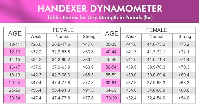 Yes, the typical hand grip strength will vary based on age and gender. For example, the normal grip strength range for a 60-year-old man is 66.6-105.8lbs.